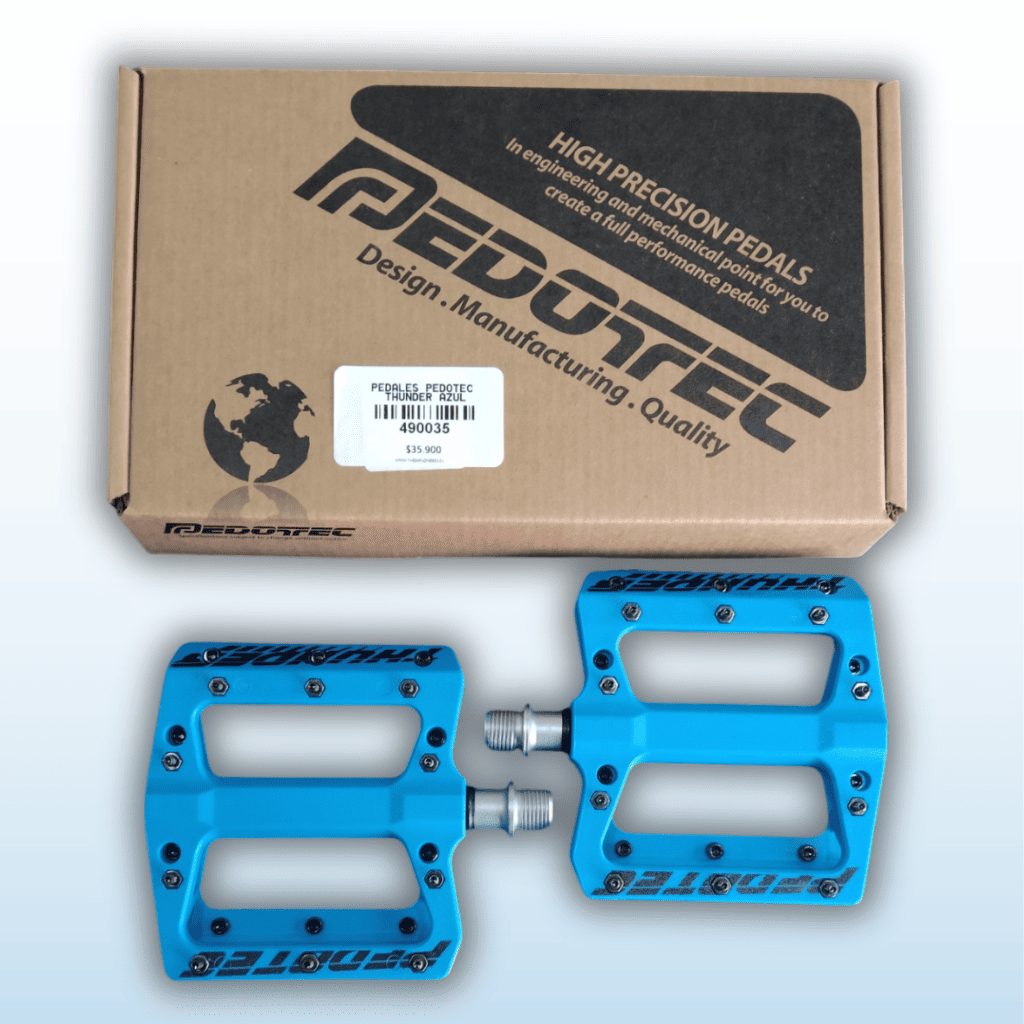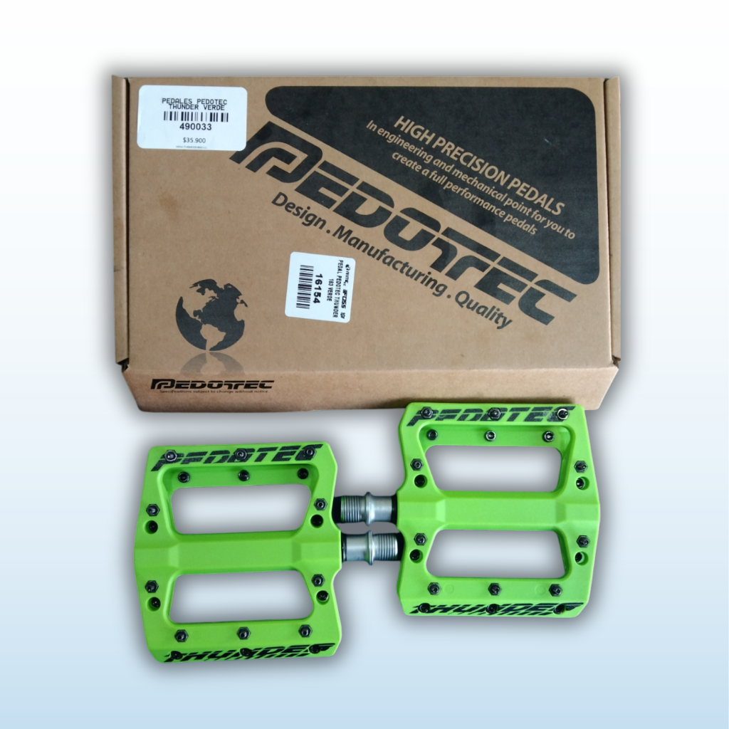 Los pedales de plataforma Pedotec están diseñados para ciclistas exigentes que buscan durabilidad, agarre y rendimiento. Fabricados en aluminio resistente, cuentan con rodamientos sellados que ofrecen un giro suave y prolongan la vida útil del pedal. Su diseño con pines metálicos intercambiables proporciona una excelente tracción y control, incluso en terrenos difíciles. Compatibles con la rosca universal 9/16", son ideales para bicicletas MTB, urbanas y de descenso.