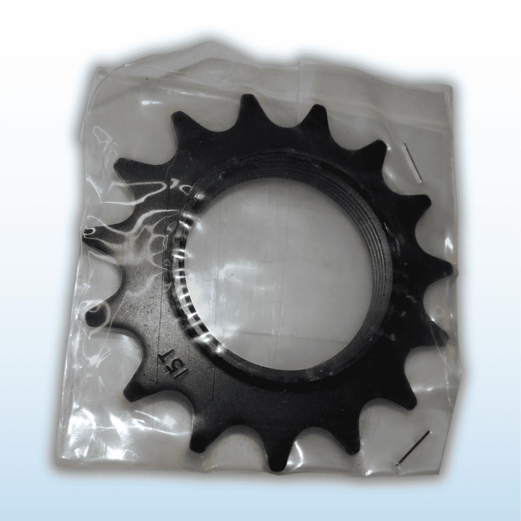 Piñón fijo de 15 dientes, ideal para bicicletas de piñón fijo o single speed. Fabricado en acero resistente con acabado negro, ofrece excelente durabilidad y agarre en el sistema de tracción. Compatible con rosca 12x1/8", estándar en la mayoría de ruedas traseras para fixie.
